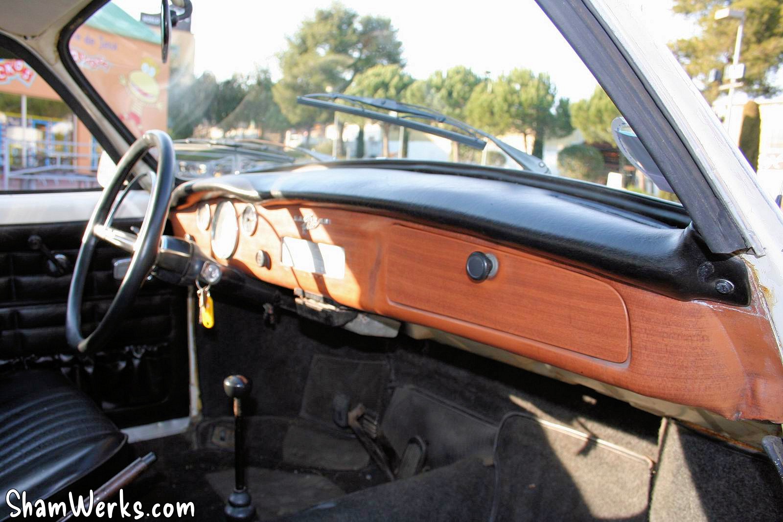 Joints pour la plupart en état très correct, intérieur d'origine nickel : il n'y a que le tableau de bord en "ronce de vinyl" qui fait un peu trop too much seventies à mon gout...