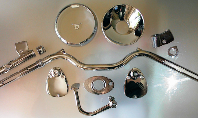 Au milieu, les chromes à leur retour du bain de chrome! Travail superbe, aux Établissements MORIANO, zone Industrielle de St Laurent du Var. Publicité gratuite, le résultat est vraiment magnifique!