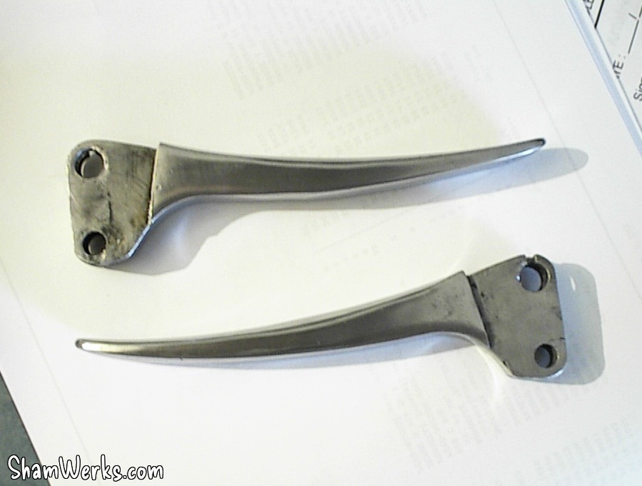 A gauche, les poignées Frein avant / embrayage. A l'origine elles sont recouvertes d'un fourreau en caoutchouc particulièrement laid, j'ai préféré les polir...