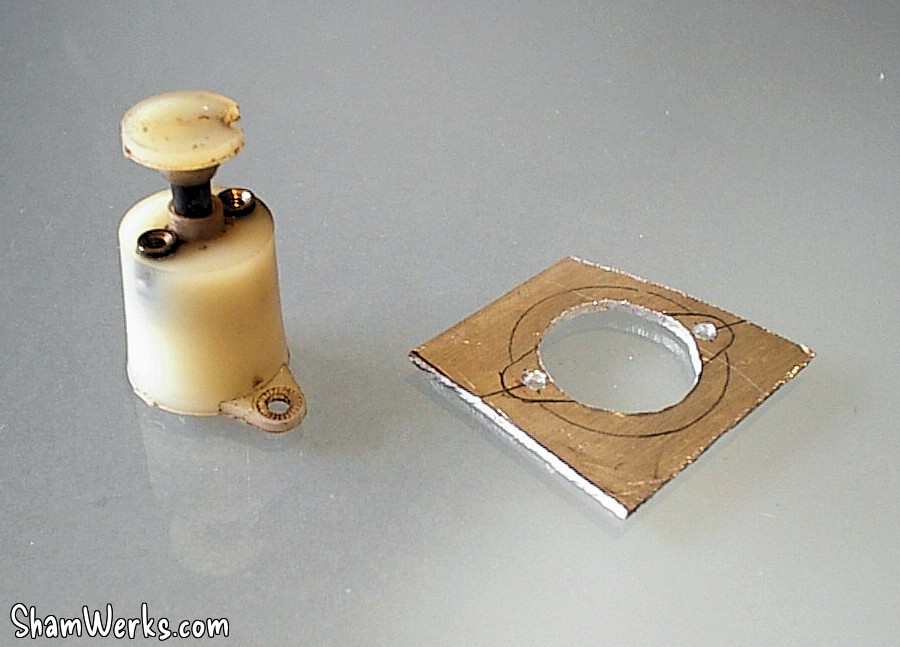 Le contacteur de feux de freins : seuls les modèles GL en étaient équipés. Les pattes de fixation du contacteur étant cassées, j'ai fabriqué un support en aluminium, collé à la résine.