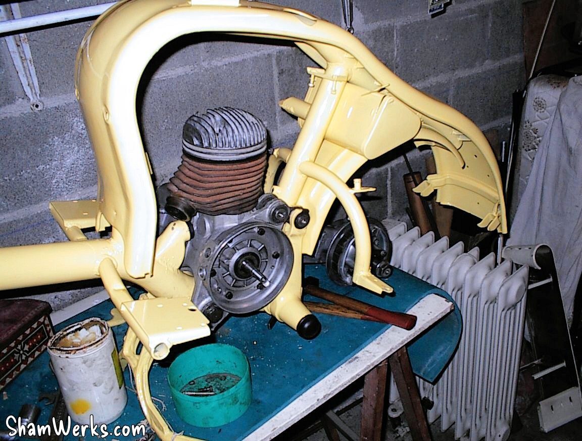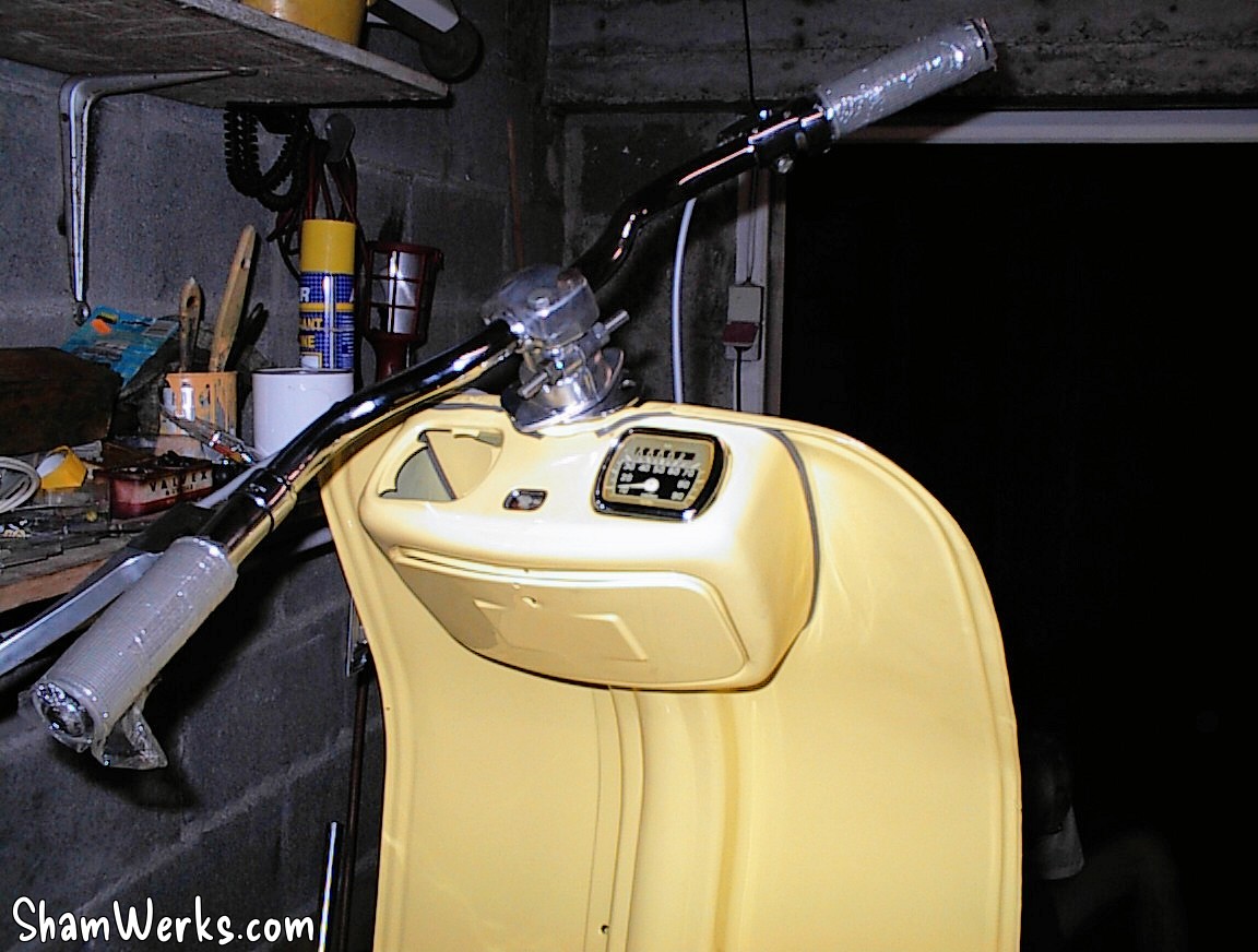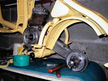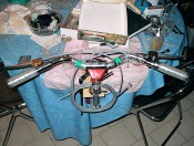 The handlebar is on, with all is cables (gear selection, clutch, front brake, throttle...).