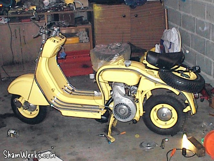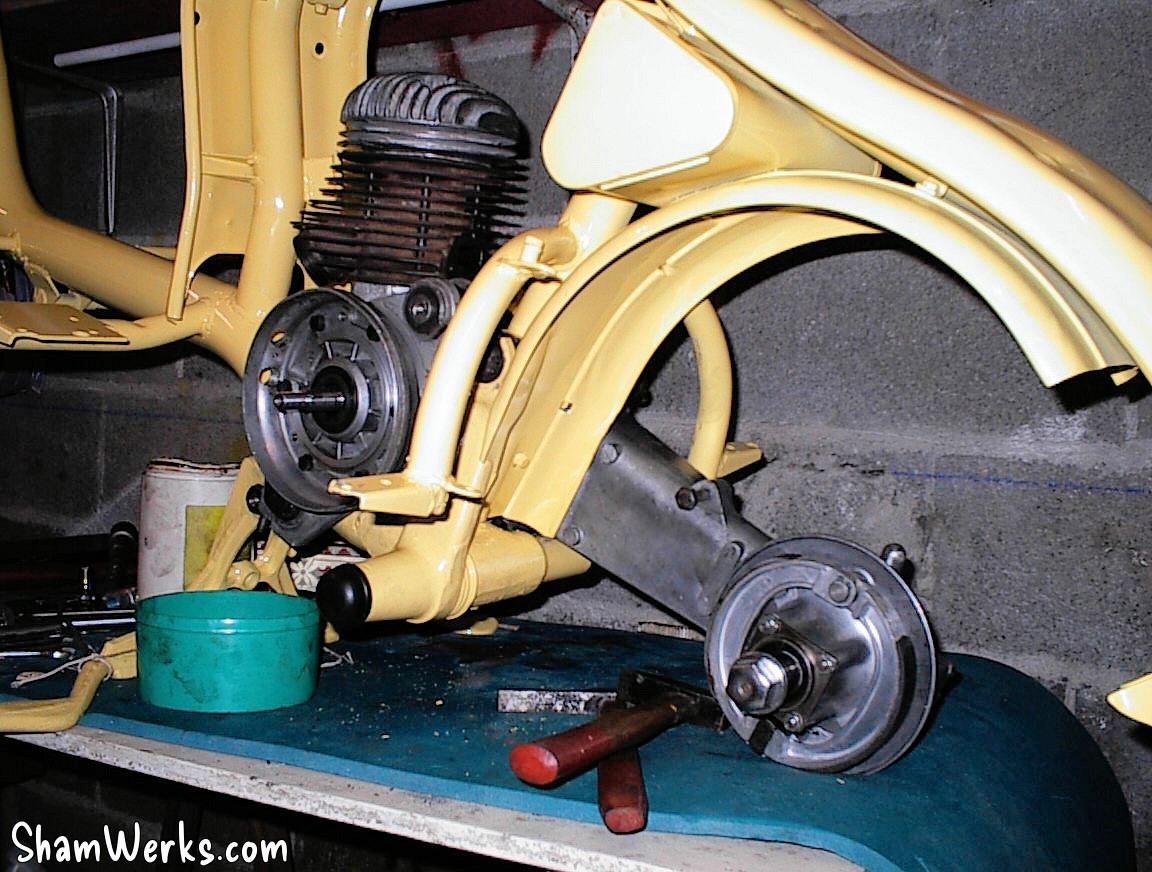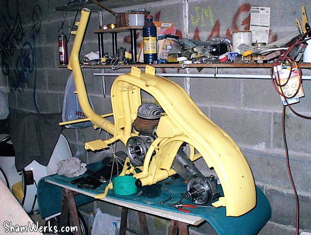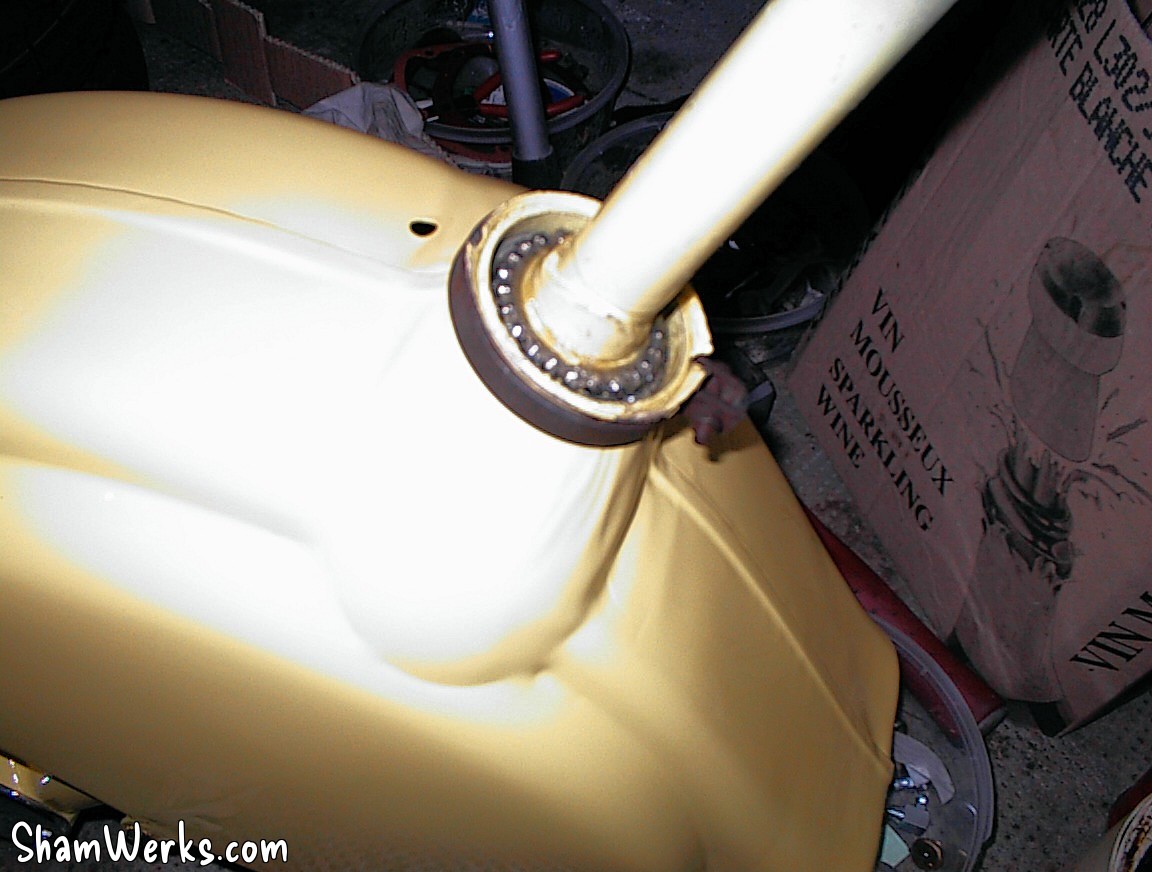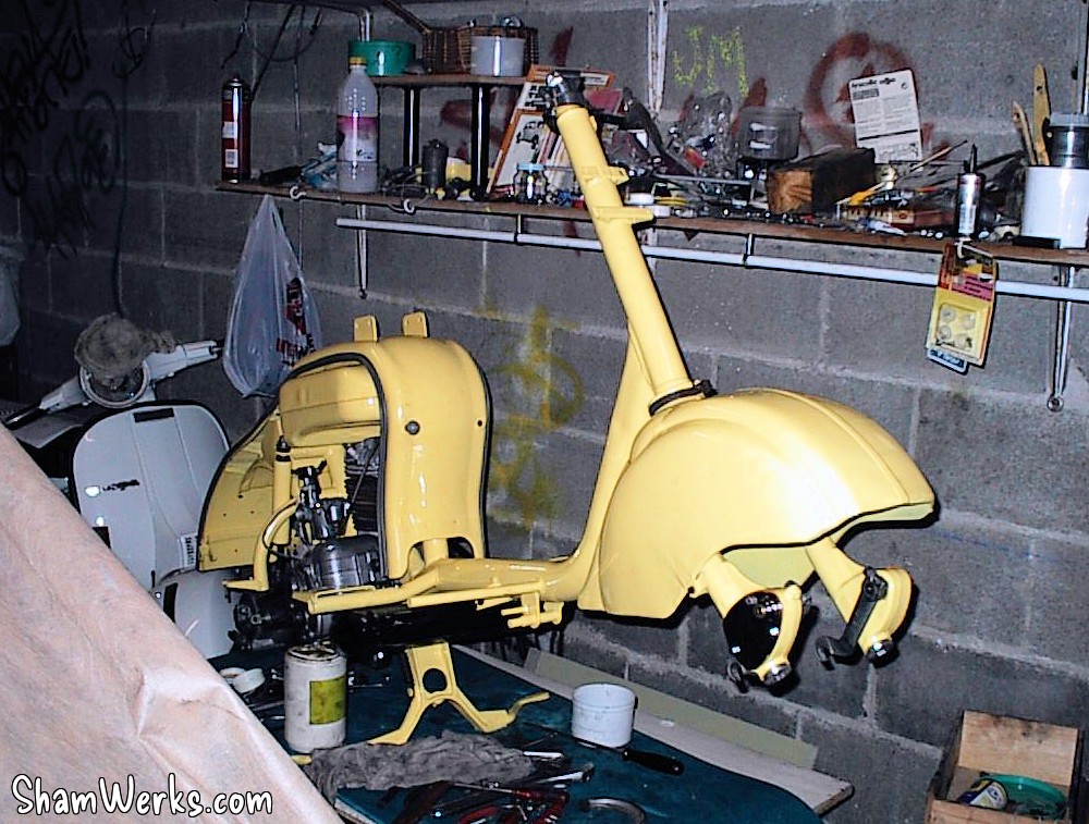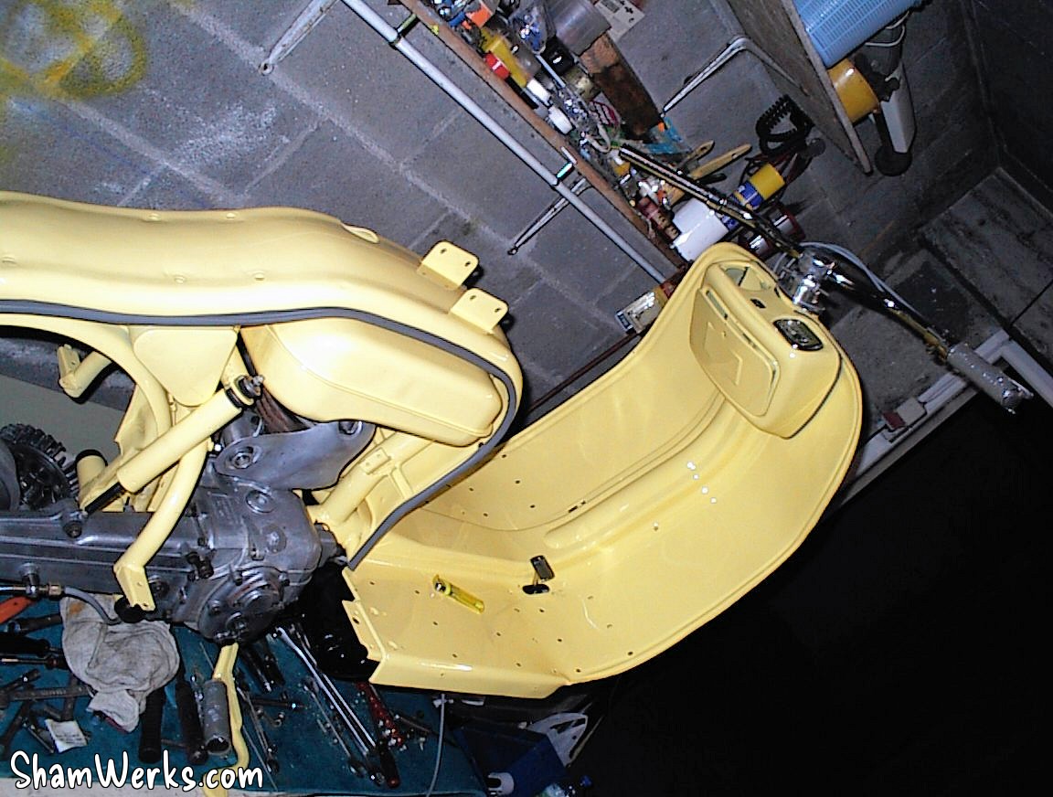 Small issue during the re assembly, the fenders don't mount fine on the frame... I forgot to ask my bodyshop to adjust'em... Argh... Anyway, with a bit of patience, I made it happen.