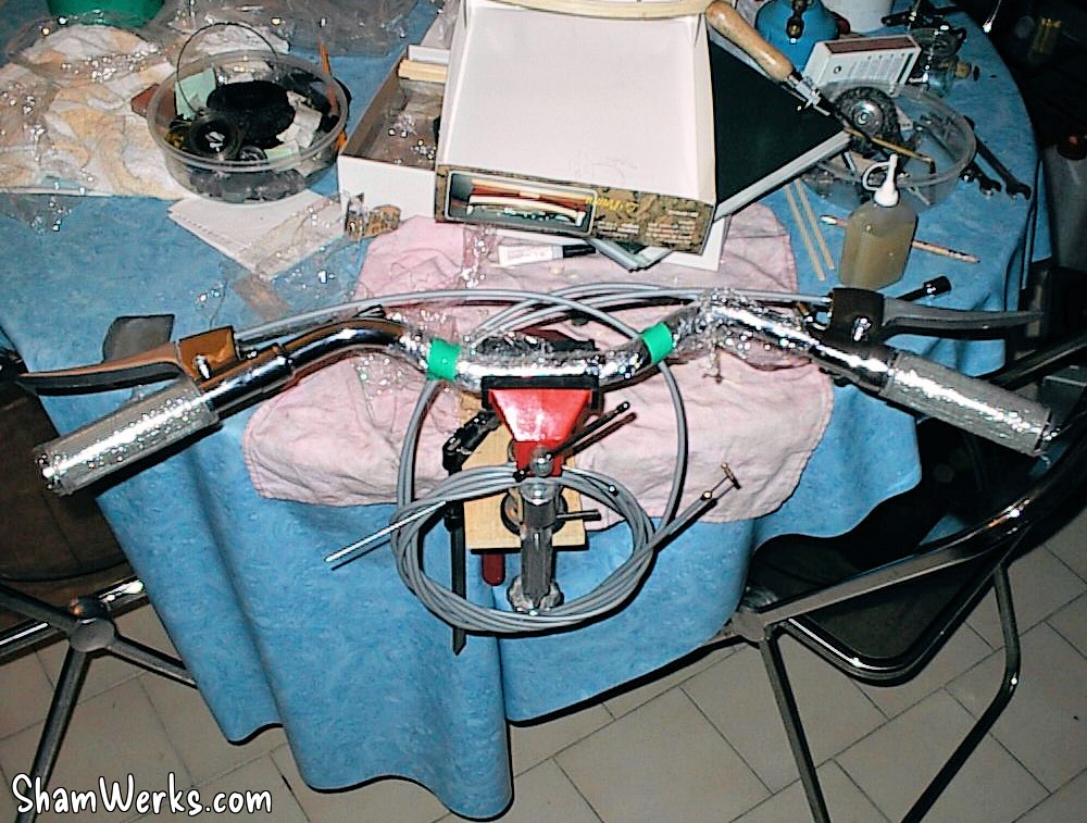 Later, I've replaced the cables by Teflon-ized models (usually used on mountain bikes). They slide much more smoothly than the Italians replicas.