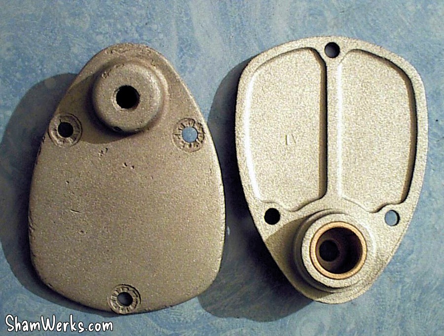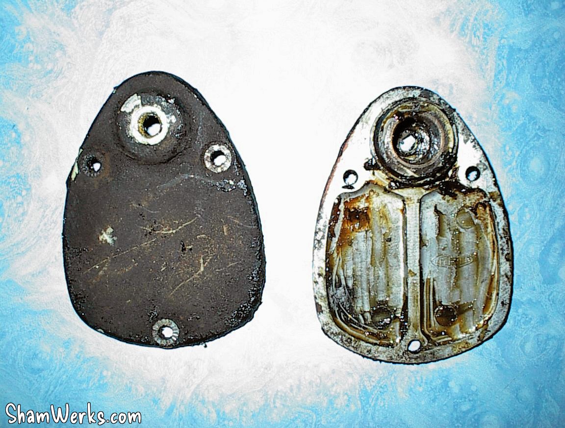 - Au centre, les plaques en alu qui viennent fermer le boitier. A l'époque elle était souvent le support d'accessoires fantaisistes : logos, blasons, etc... Moi je vais les faire chromer...