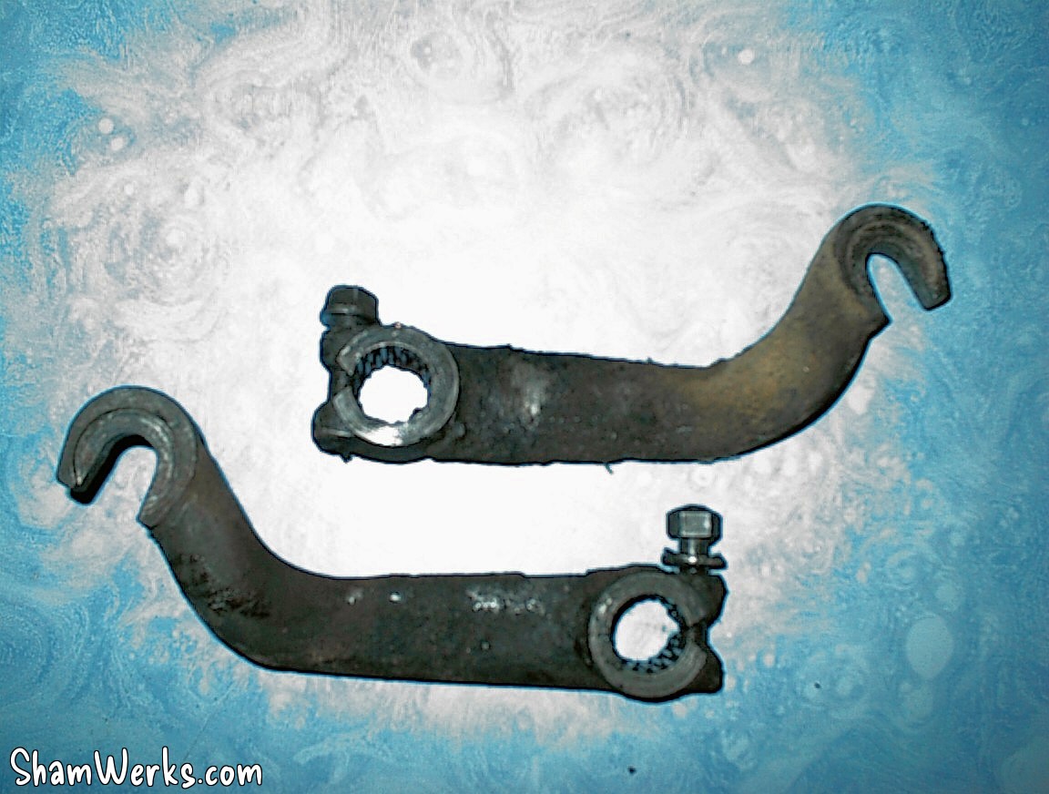 En fait, la suspension arrière est a barre de torsion. Un bras vient sur cette barre, et une rotule relie le bras au moteur. C'est un des deux axes de cette rotule que j'ai retiré...