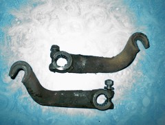 - A droite, les deux bras de suspension. En fonte d'aluminium apparemment, ils sont passés au polissage!