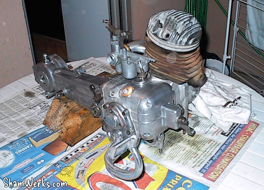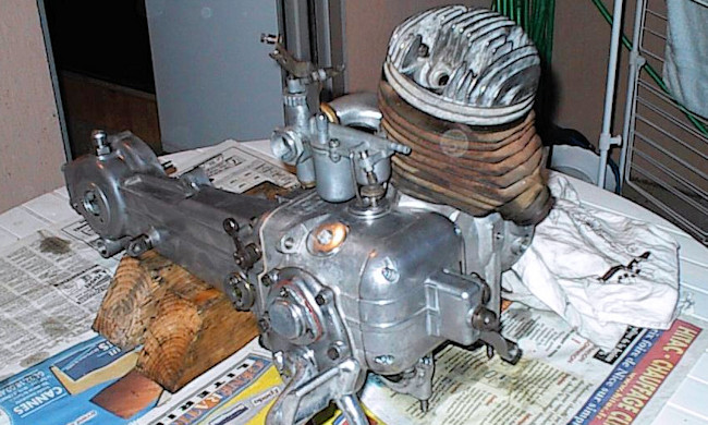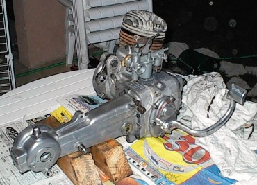 Note : j'ai trouve de la fibre de verre dans le pot d'échappement. Le président du Lambretta Club de France m'a dit que cela était une preuve que le scooter n'avait que peu roulé; en effet, la fibre était de mauvaise qualité à l'époque, et était rapidement brulée...