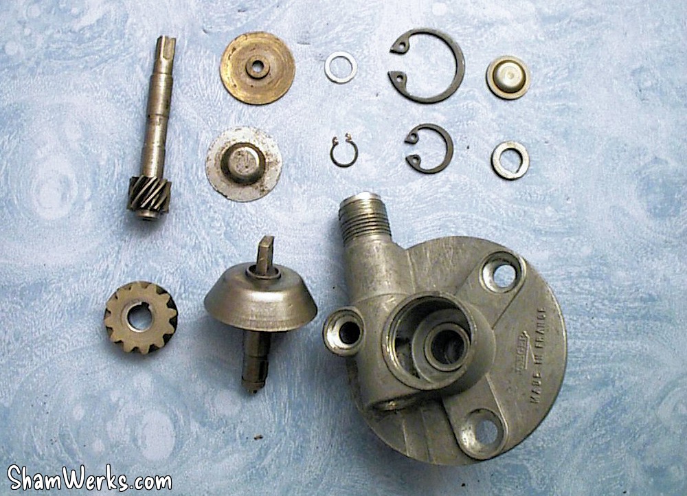 Le "capteur" du compteur de vitesse. Une pièce d'horlogerie de marque Jaeger. Superbe.