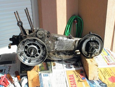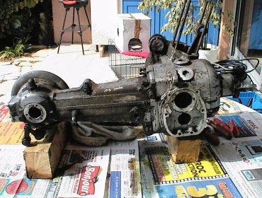J'ai ramené le moteur chez moi : état d'avancement du démontage, sur ma terrasse... 😉