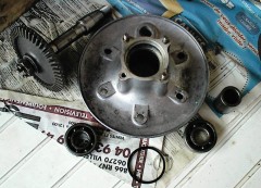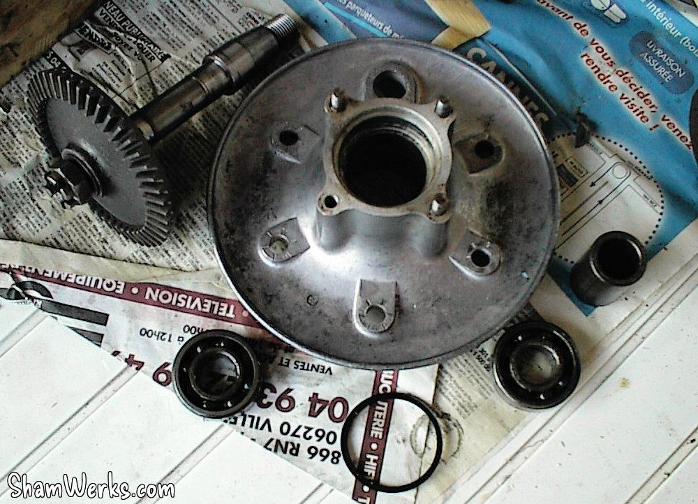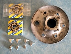 Fusée arrière : deux roulements à changer (ils "grattaient"). Attention au démontage au petit joint que l'on voit en bas sur la photo : il ne faut pas le perdre, on ne le trouve plus que très difficilement aujourd'hui. Bien sur, on peut toujours le fabriquer mais bon...