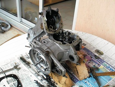Seule galère : lors du remontage du piston, un clip de blocage d'axe de piston a décidé de s'exiler au fond du carter, sous le vilebrequin... Pas facile de l'en faire sortir! Conseil : couchez le moteur sur le coté pour monter ces clips, pour ne pas prendre de risques...