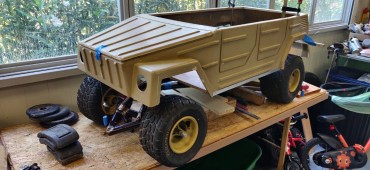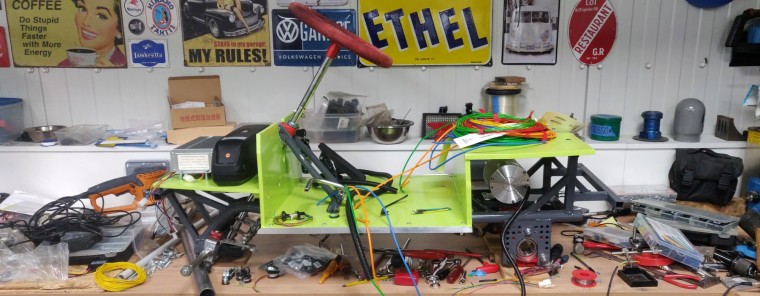 The board in the front under the hood will hold the battery, controller, and most of the electrical circuit. Two pieces of aluminium angle on the sides will hold the body shell in place.
