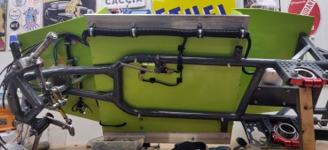 So I build a floor, seating area and dashboard out of 10 and 12mm thick plywood ; this will prevent the little one from putting his fingers in the rear chain and sprockets, or his feet in the steering in the front.