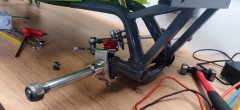 Back in 2007 I had started a chassis from square steel tubes, but it was not looking good from the beginning. I had built it in a hurry, as I had convinced myself I could get it to drive within 48 hours for an upcoming meeting. Unsurprisingly, it did not work out. To give you a glimpse of the "quality", as I did not own a lathe back then, I chose to directly spot weld the brake disc and transmission sprocket on the axle!