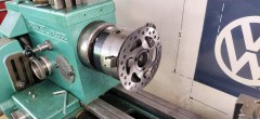 As for the steering parts, I pick in the stock of go kart parts I've accumulated along the past 15 years. I turn down on the lathe the aluminium steering links, leaving the left-handed thread on one end and re-threading the other, to keep the adjustment like on the original go kart. I also drill new holes in the spindles to increase the steering angle.