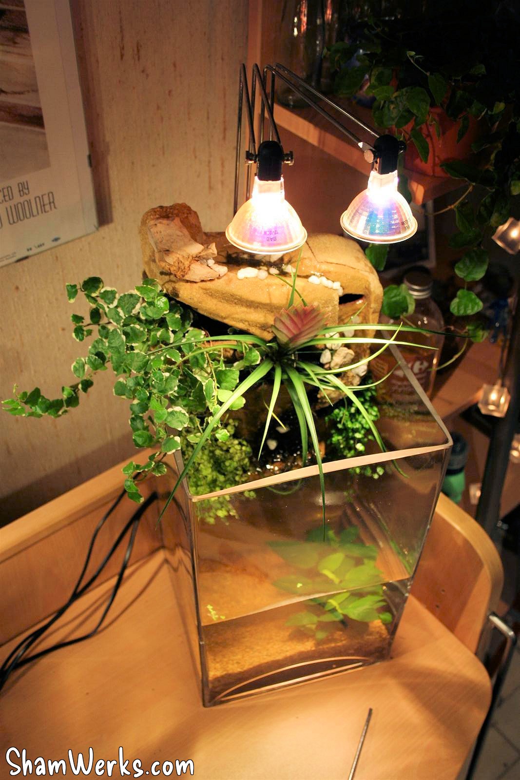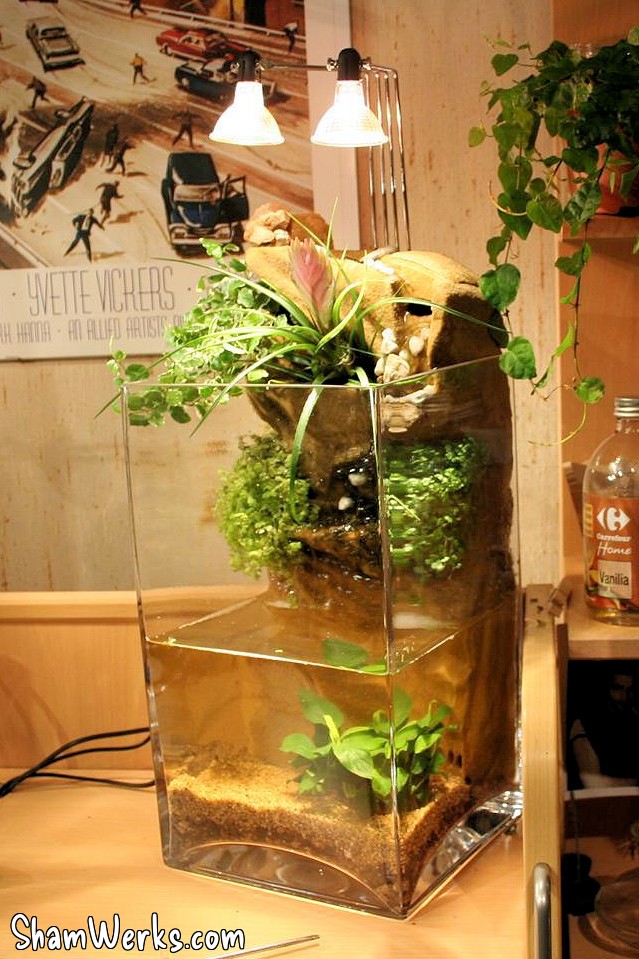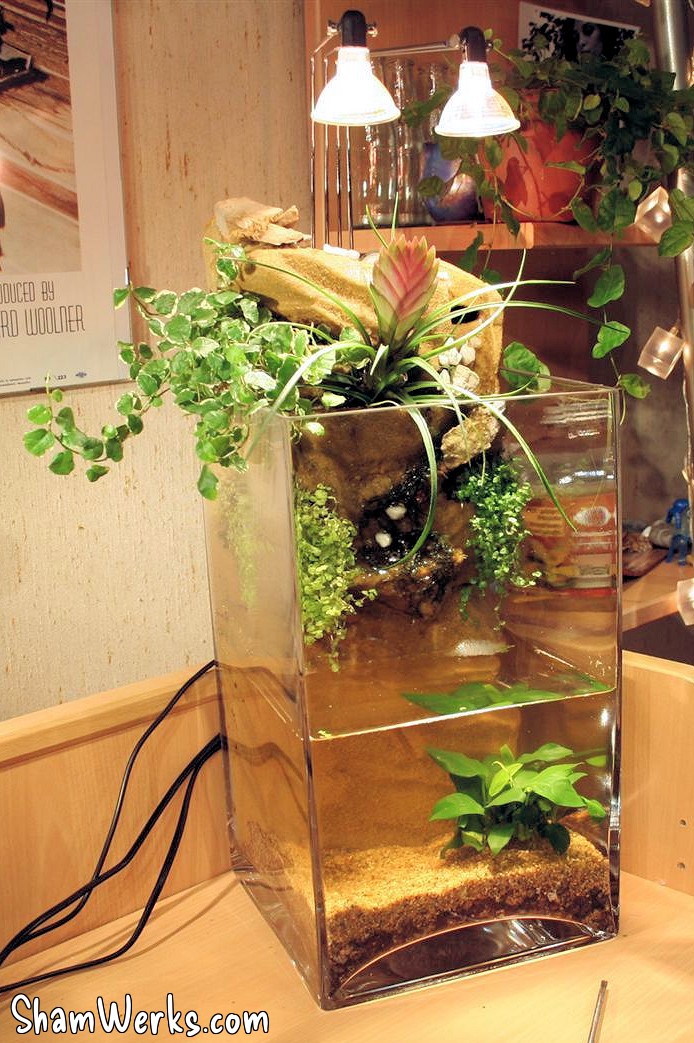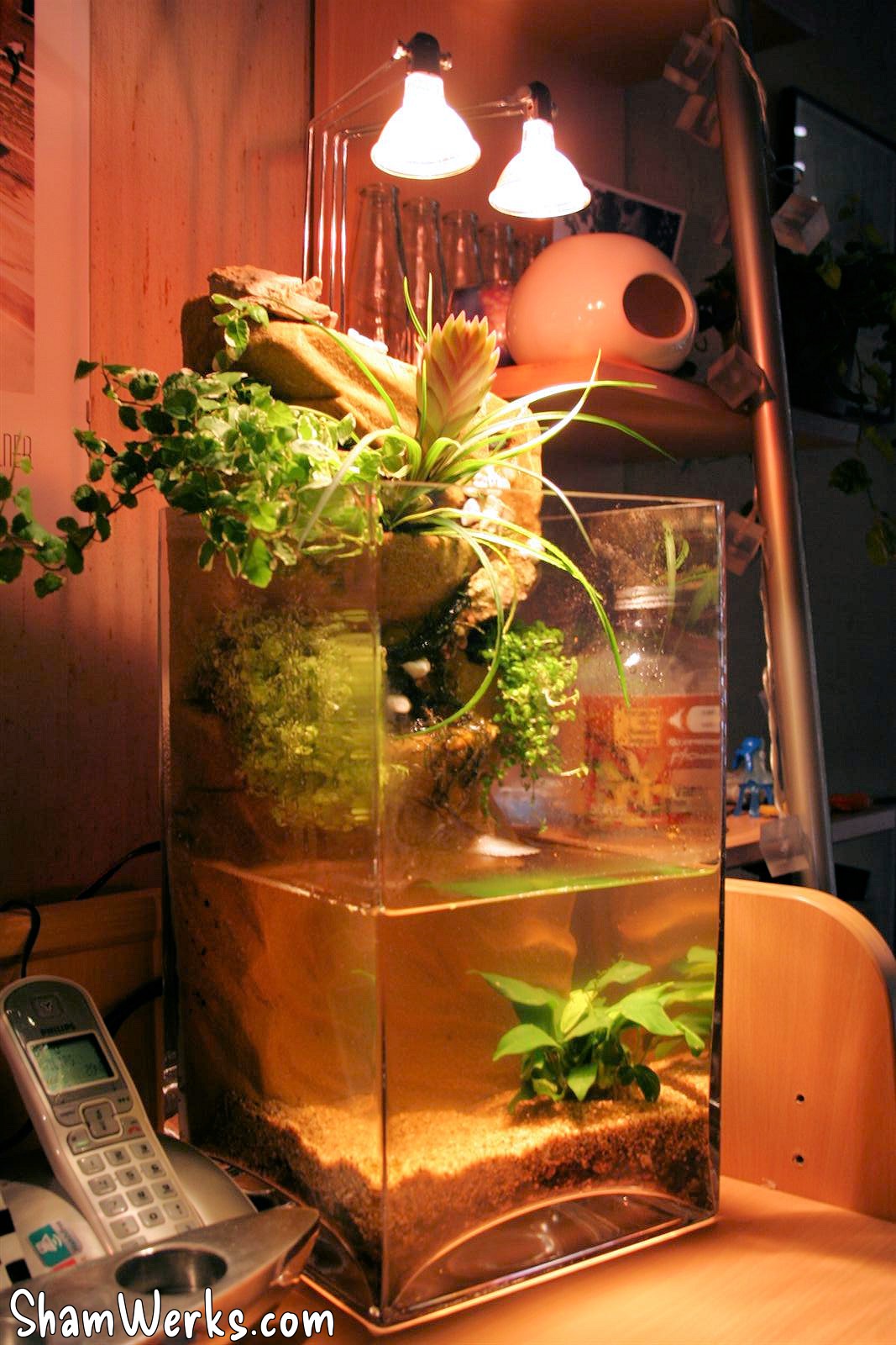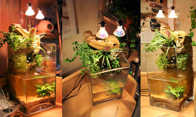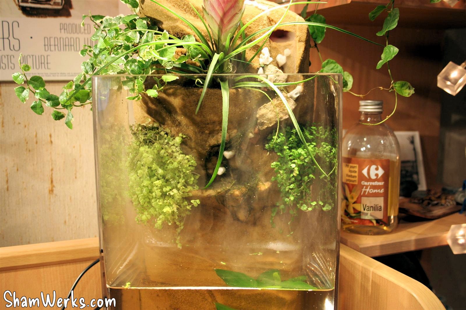 - Top left, I've put a Ficus White Sunny, that "pours" outside of the tank.