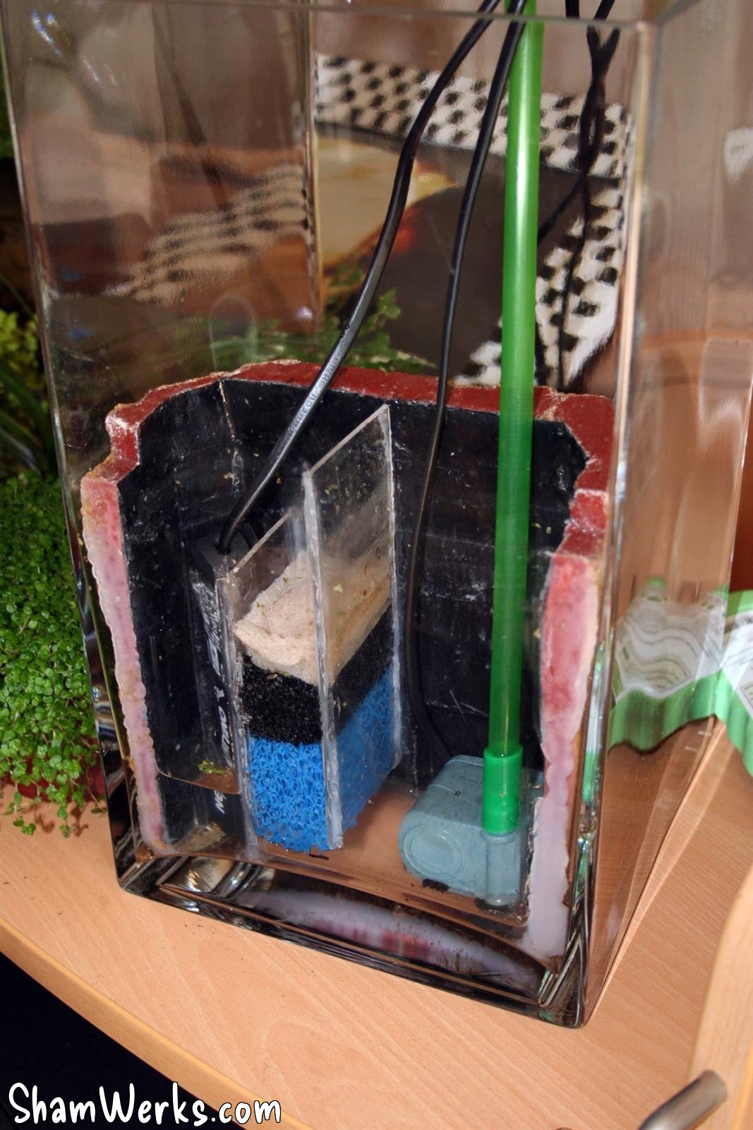 - Last but not least, I've put an Anubia Nana down in the water, which hides the water intake.