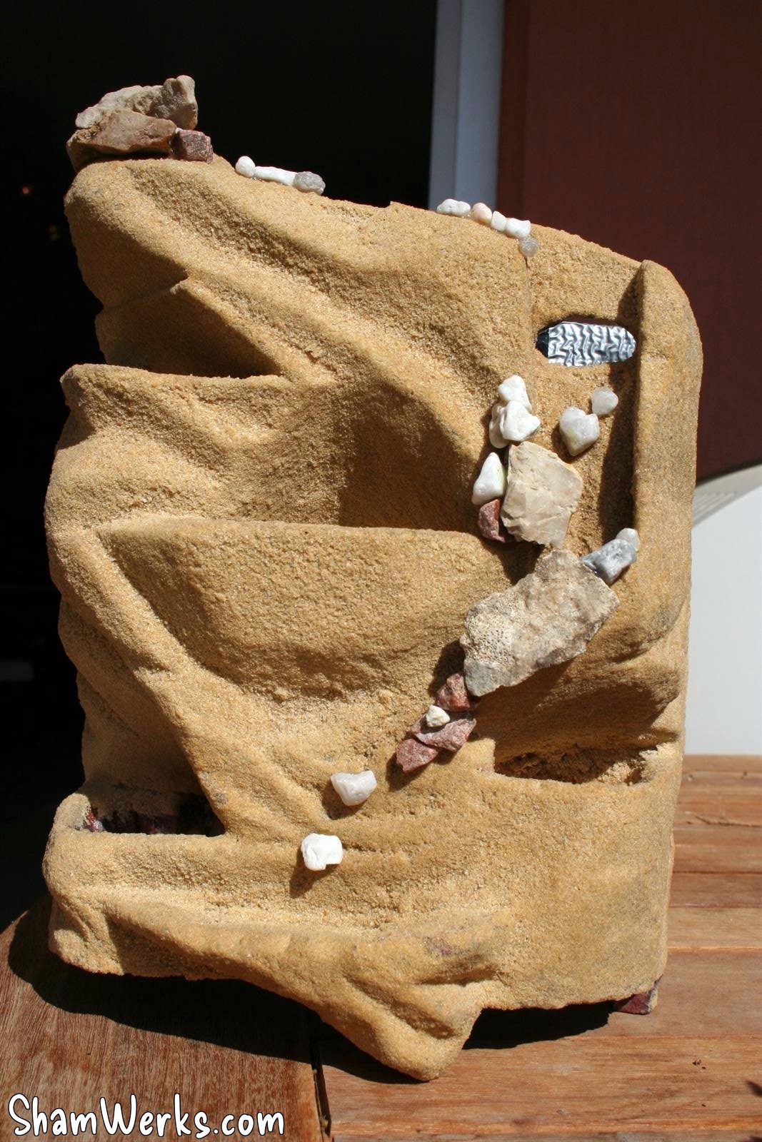 I fixed the issue in two steps : first, I epoxy-glued little stones to keep the water flow as planned. And aesthetically, I feel like it looks even better this way!
