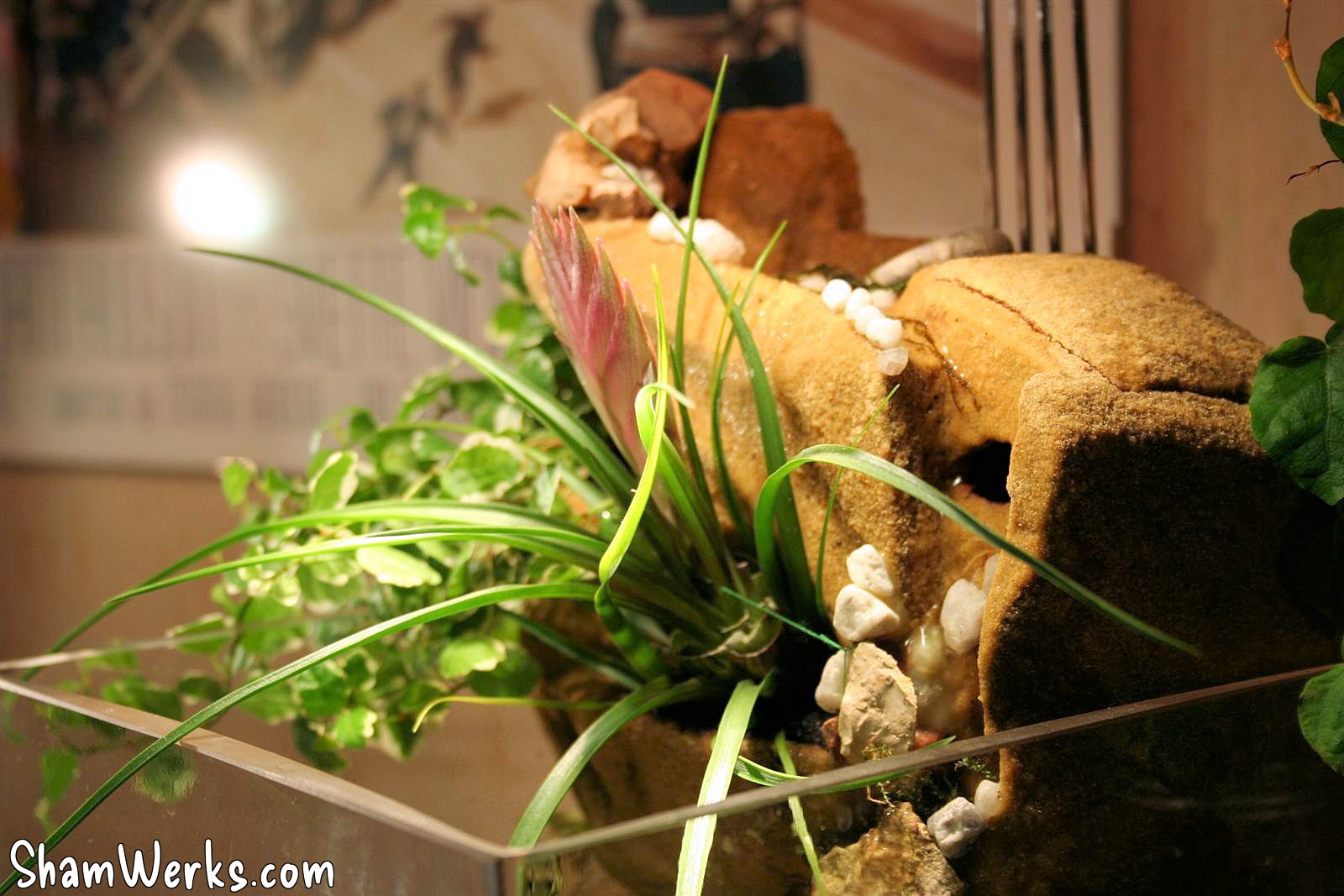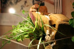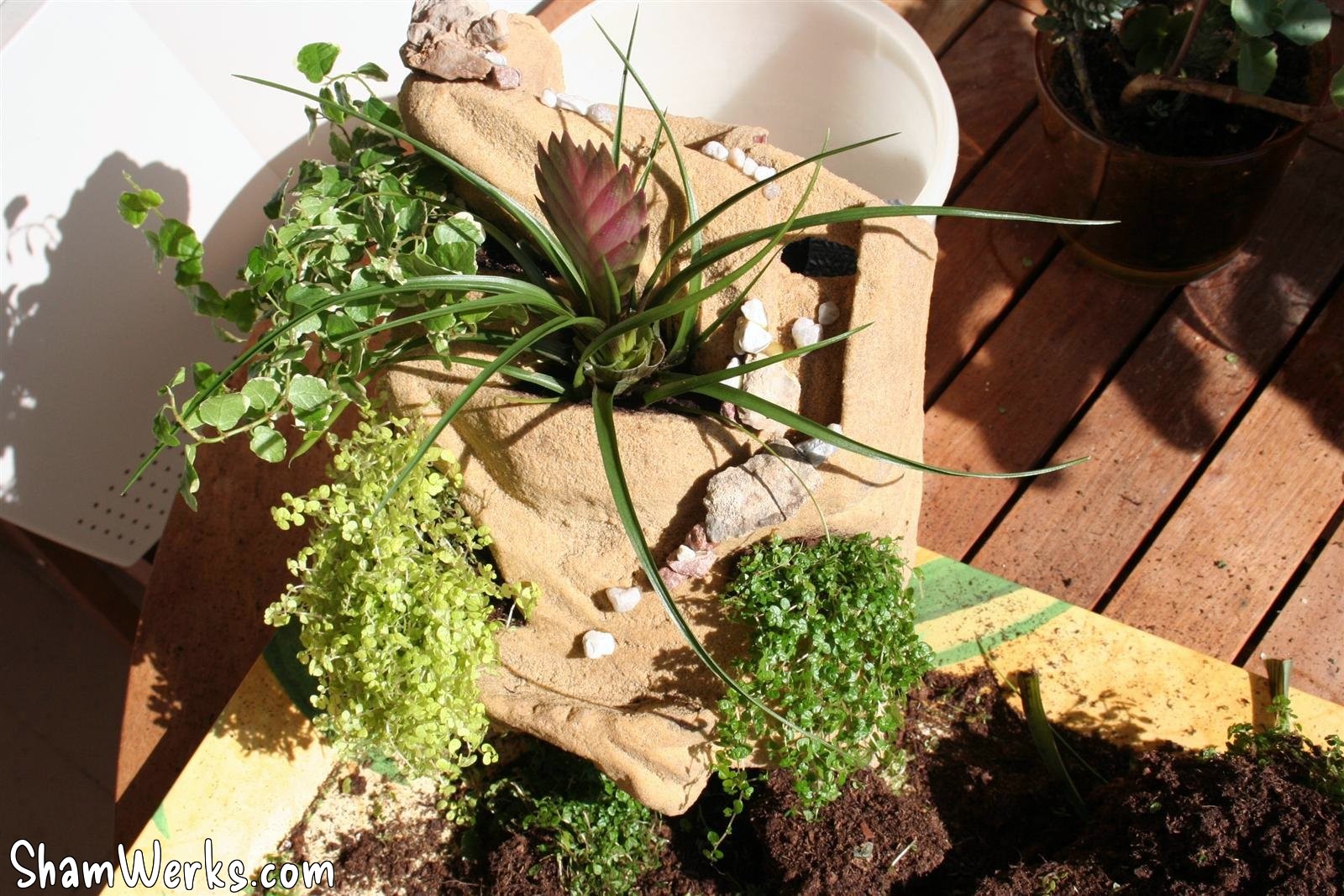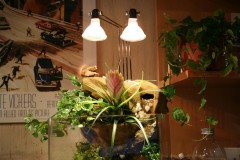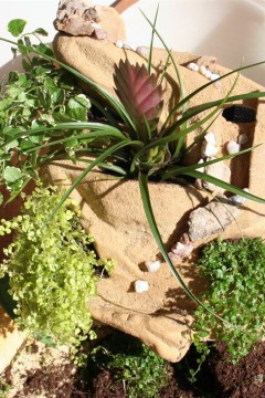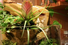 - Right in the middle, a Tillandsia Cyanea, for which I had to cheat a little bit, using some sewing thread to hold its flower, which was too heavy to stand still...