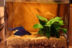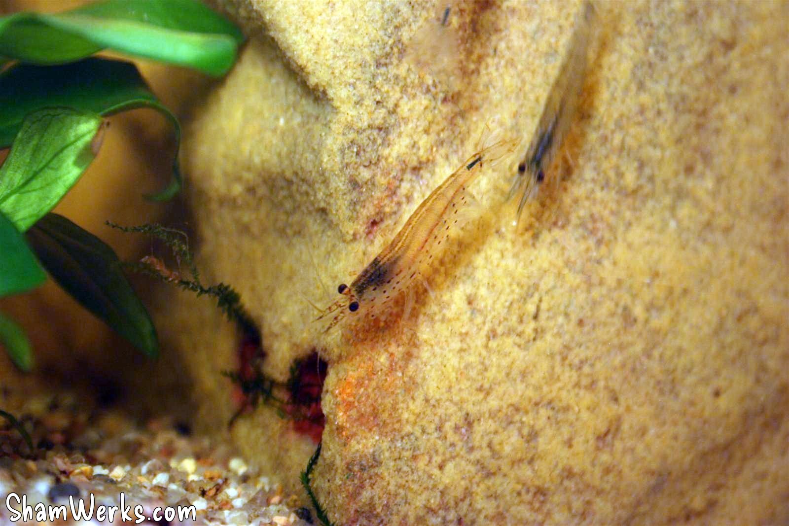 Four shrimps (Cardina Japonica, to be confirmed) keep company to Bettadyne; I expect those detritivores to clean the bottom of the tank from any vegetable debris... The size of those babies (15mm) avoid the Betta's fins from being attacked, as the 4 Samuraïs are pretty scared by the Fighter Fish!