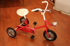 La petite Charlotte allant sur ses 5 ans, et sa mère, une amie, ayant trouvé un vieux tricycle (70's?) négligemment jeté aux ordures, je me suis retrouvé avec un "week-end project" qui me plaisait bien...