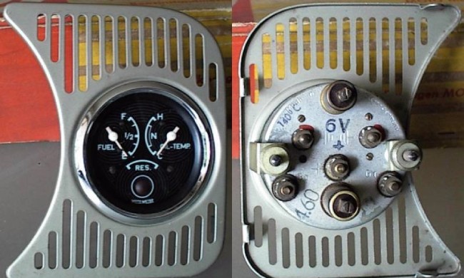 This is a "2 in 1" Motometer gauge : fuel level (with a reserve light) and oil temperature...