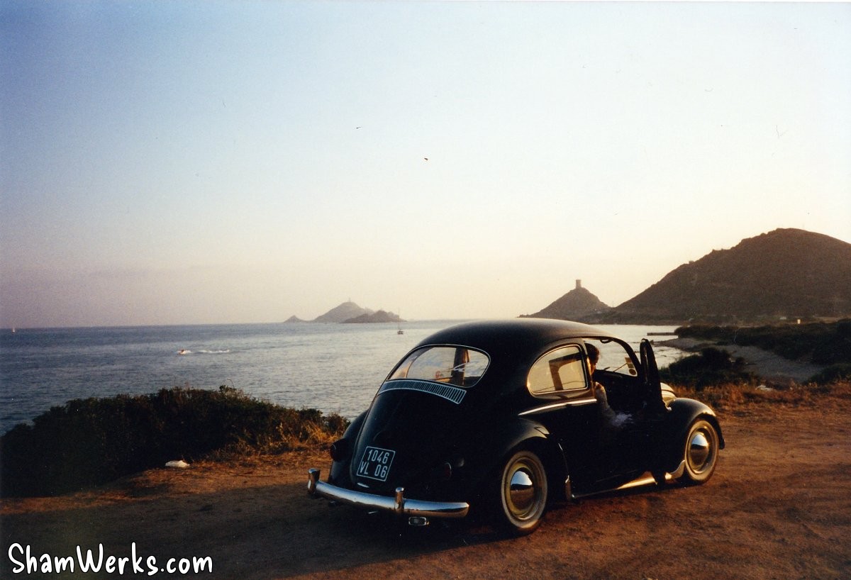 Here are 4 pictures "before". The first two were taken at the VW meetings in Draguignan (1997) and Menton (1998?). The 2 others were taken in August 1995, in Corsica, facing the "Iles Sanguinaires" (Bloody Islands) at sunset (this is at the end of the Ajaccio gulf ; they're called "bloody" because those islands turn dark red at sunset during the winter).