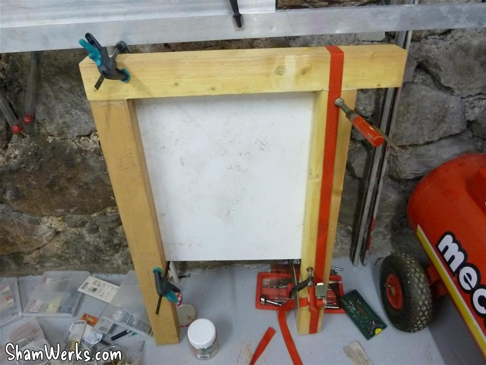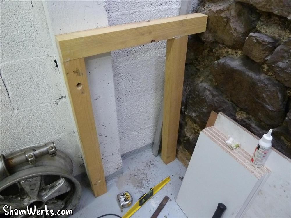 On top of it all, a 58mm thick (maximum I could find) melamine chipboard kitchen countertop, and here you go!