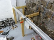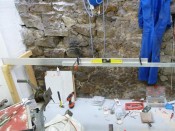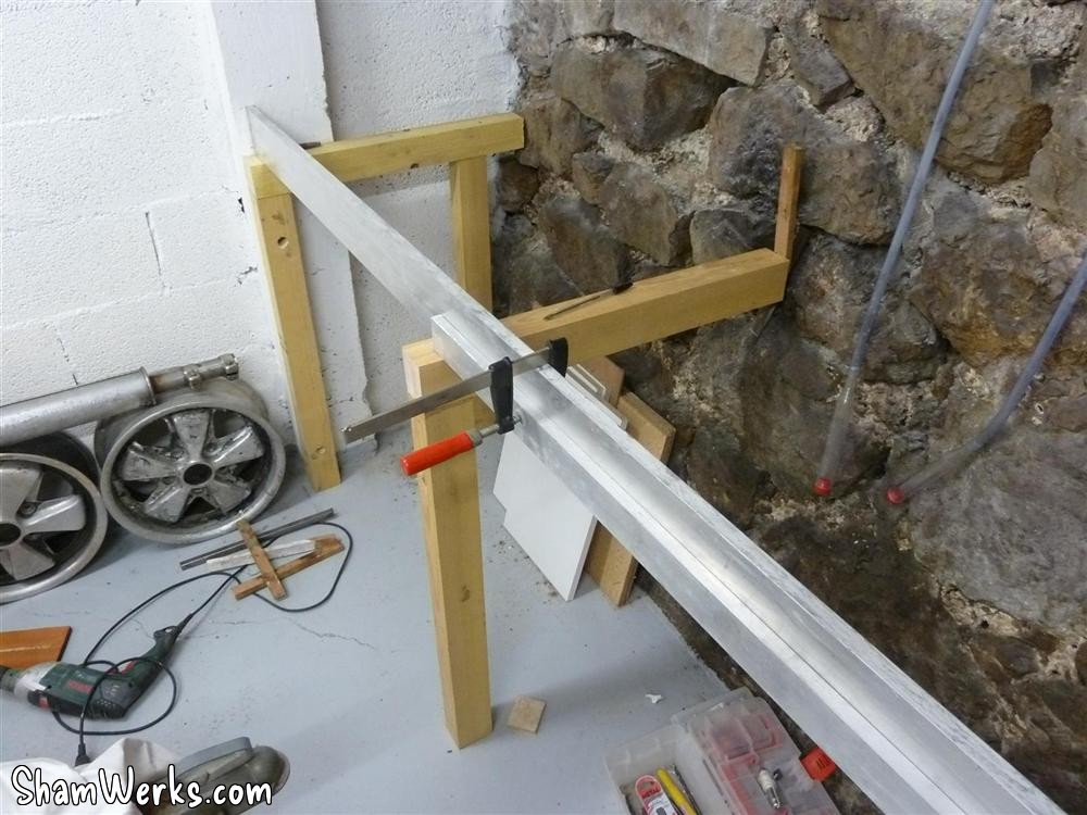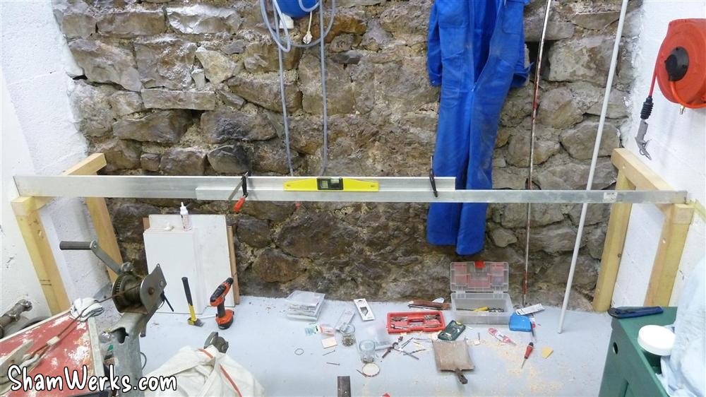 Once both of these stands are fixed into the walls, I could, using a long aluminium rule (actually, it was two 2 meter rules clamped together) in order to measure the exact length of each stand. Well, have a look at the pictures, you'll understand what I mean. 😁