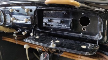 In short, to go back to the origin, I removed the autoradio, as well as the 6-12V converter that I had built at the time (dated 1994! With its homemade plywood case, we're talking real vintage there!). And I replaced the cardboard glove box with one from the same year, in very good condition. Lookin' better!