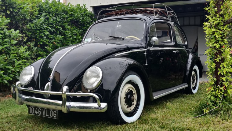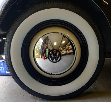 As for the hubcaps, I had smooth baby moons for almost 30 years, but they were starting to show rust, and above all I wanted to return to a more "stock" look. So I bought the official VW reproductions with the stamped logo, pretty expensive sh*t but really nice product: thick sheet metal, stamped in logo and not (stamped out), deep chrome, protective paint on the interior...