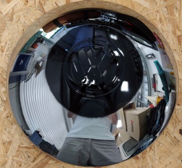 Incidentally, the edge of the rim suffered from removing the clamped weights, I touch that up with a small paintbrush and glossy black lacquer...