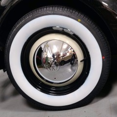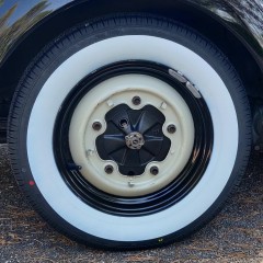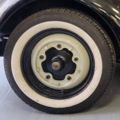 I wanted to go for real whitewalls, and after many comparisons of the few options available on the market (European Classics, Autobahn, Firestone, Coker...), I decided to go with Kontio (Finnish brand) "WhitePaw Classic" in 165/80R15, featuring a 64mm white sidewall, a radial structure, and an acceptable price (167€/piece, where some brands exceed 330€...). The European Classics are a bit cheaper, but the specialist I wanted to buy them from strongly advised against them!