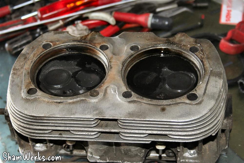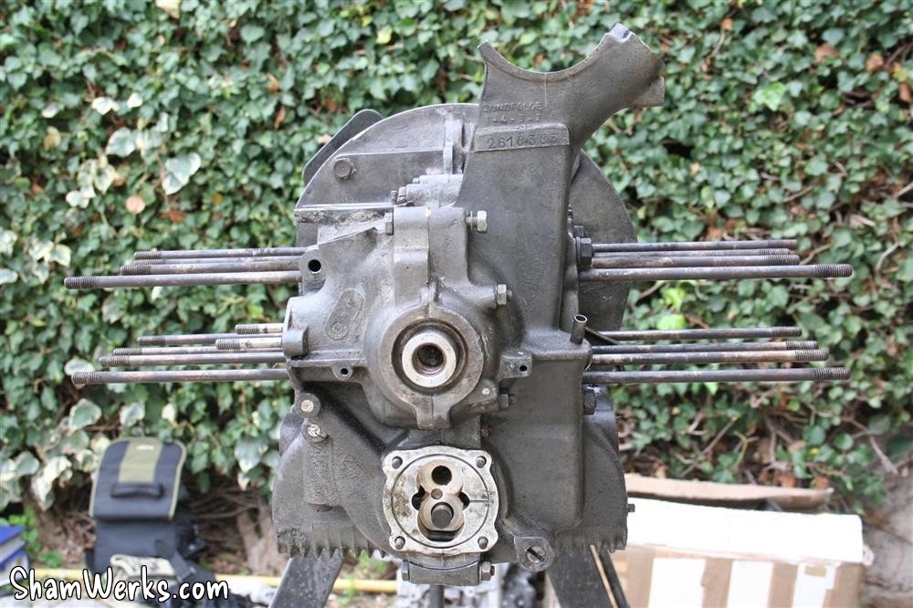 On the bright side : the engine case bearings housings roundness is OK ; a bit of corrosion underneath and around the oil sump, but nothing to be concerned about. The pistons and cylinders look like new, they definitely had been replaced - that, and the ugly fixes on the heads, is probably what the seller of this engine called "rebuilt"...