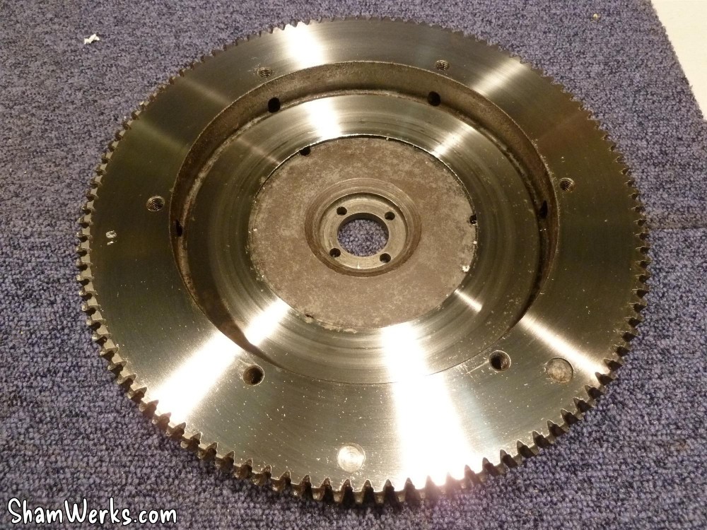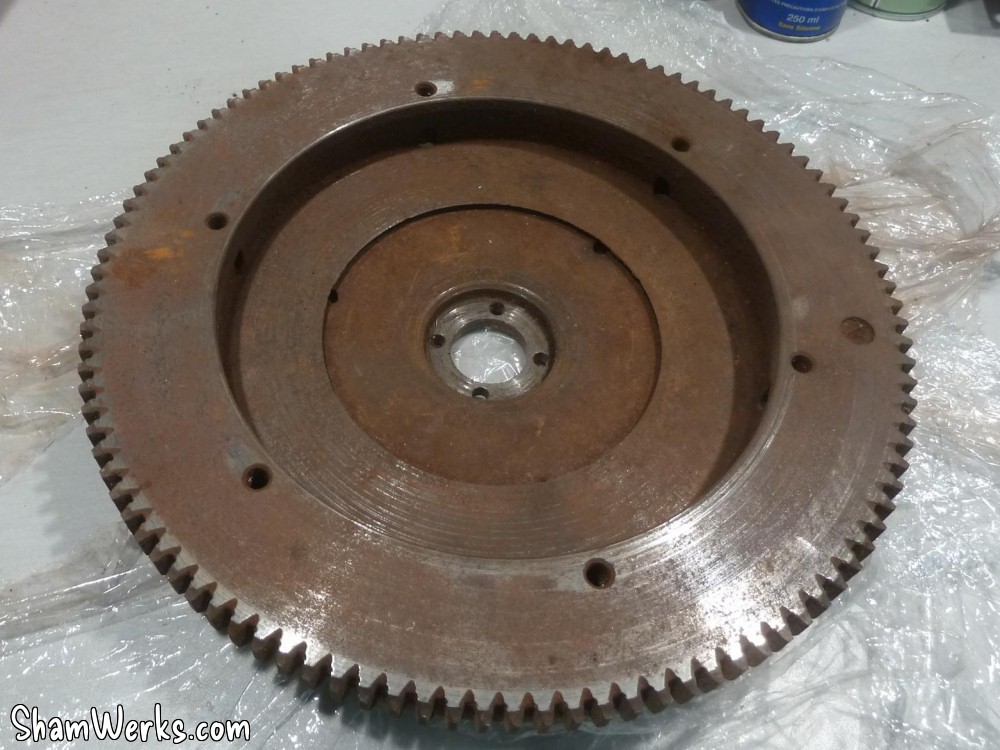 Le volant moteur en a profité pour passer en rectification ; comparez avec des photos "avant" juste un peu plus haut, c'est quand même autre chose hein...