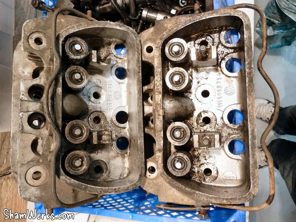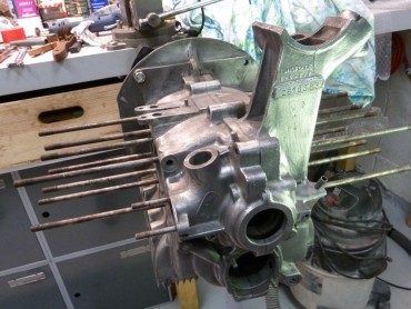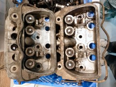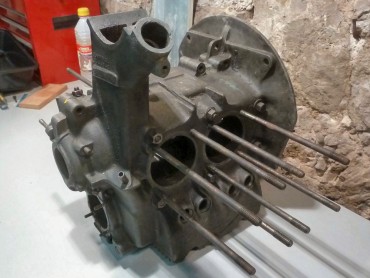 Ça m'a couté un rein, mais au moins je remonte l’esprit serein. Et puis de toutes façons, j'en ai deux, de reins. 😁 Une paire de culasses en très bon état trouvées à Valence 2012 : 60€ la paire, ça valait le coup de rouler 7 heures A/R et d'affronter les -14°C sur la route à 6H du mat' pour y aller! C'est de l'occasion, mais tous les filetages sont bons, pas de goujon cassé, pas de fissure entre sièges de soupapes et puits de bougies, elles seront parfaites une fois préparées. Il n'y a qu'une chambre qui a dû manger une rondelle (ou un mauvais stockage), mais rien d'irrattrapable. Elles commencent à pas courir les rues les 111.101.371A en bon état! J'en avais trouvé une NOS en Allemagne il y a quelques années, mais impossible de lui trouver une petite sœur NOS aussi, du coup je la vends pour financer la suite (me contacter si intéressé!)...
