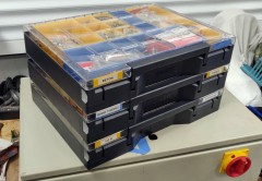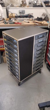 En près de 40 ans de bricolages divers, j'ai accumulé plein de boîtes de rangement diverses, pour mes vis, boulons, rondelles, chevilles, cosses,etc... Évidemment des boîtes de toutes les tailles, donc difficiles à ranger, et de s'y retrouver facilement.