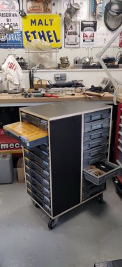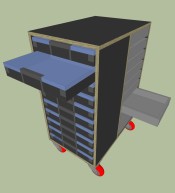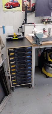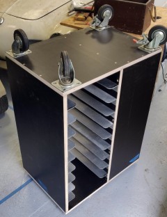 Je me retrouve du coup avec une dizaine de ces mallettes... Pour pouvoir ranger tout ça, et trouver ce dont j'ai besoin facilement, je me suis fabriqué une servante sur mesure.