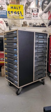 AUER les propose en différentes tailles, avec des assortiments de casiers à l'intérieur différents, et dans des dimensions standardisées, empilables sur mes bacs de rangement norme Euro de la même marque.